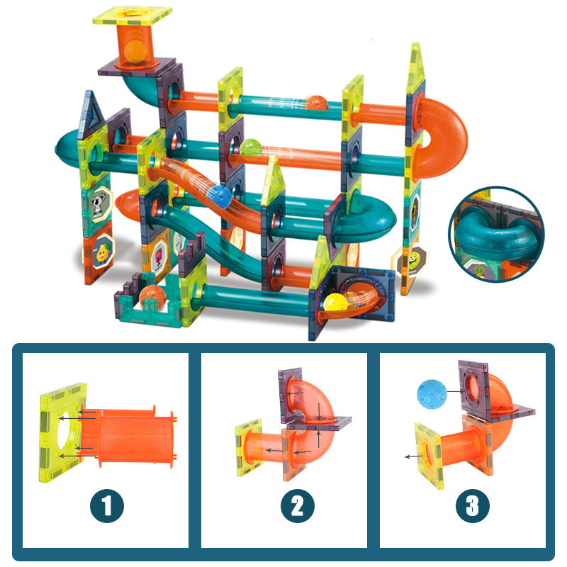 Les blocs de construction magnétiques se collent immédiatement comme par magie, votre enfant peut ainsi assembler des circuits à billes basiques et complexes lui permettant de développer sa créativité et ses facultés intellectuelles tout en jouant